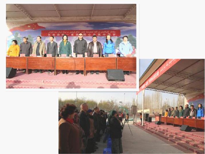 2016年11月10日,首批107名干部职工在厅主要领导的带领下来到和田市古江巴格乡文化广场与村民齐聚国旗下,参加“民族团结一家亲”结对认亲活动,大家齐唱国歌、自我介绍、共同跳麦西来甫、代表发言互诉衷肠,会场其乐融融热闹非凡。